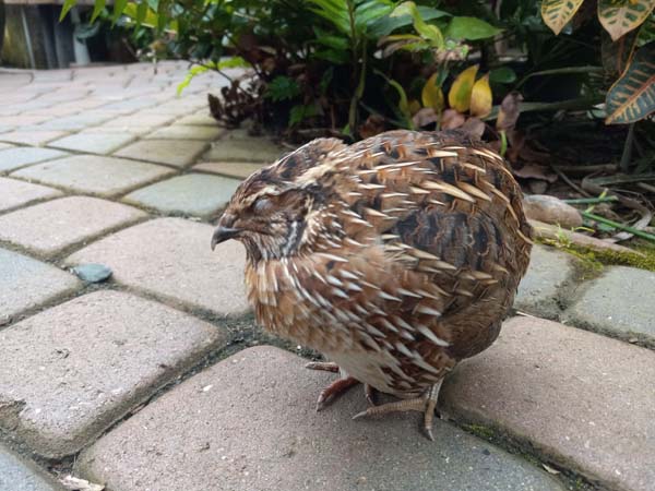 In another room there were a number of tiny quail, each about the size (and shape) of a small coconut. One was standing in the middle of the path with his or her eyes closed, as if sleeping and unconcerned about being stepped on. Nearby, a couple people sitting on a bench were reading aloud to each other, though it wasn't clear why.
