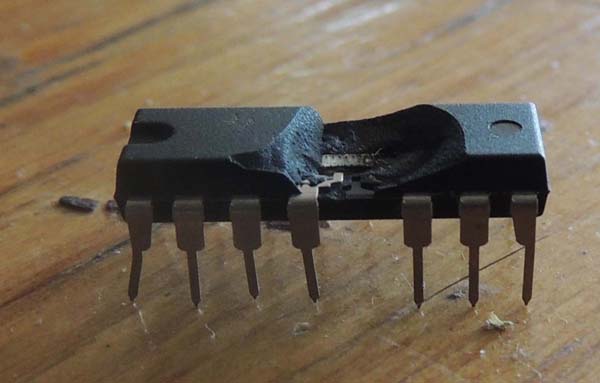 The damaged ULN2003 that had been switching on the valve-control relays in the solar hydronic system.