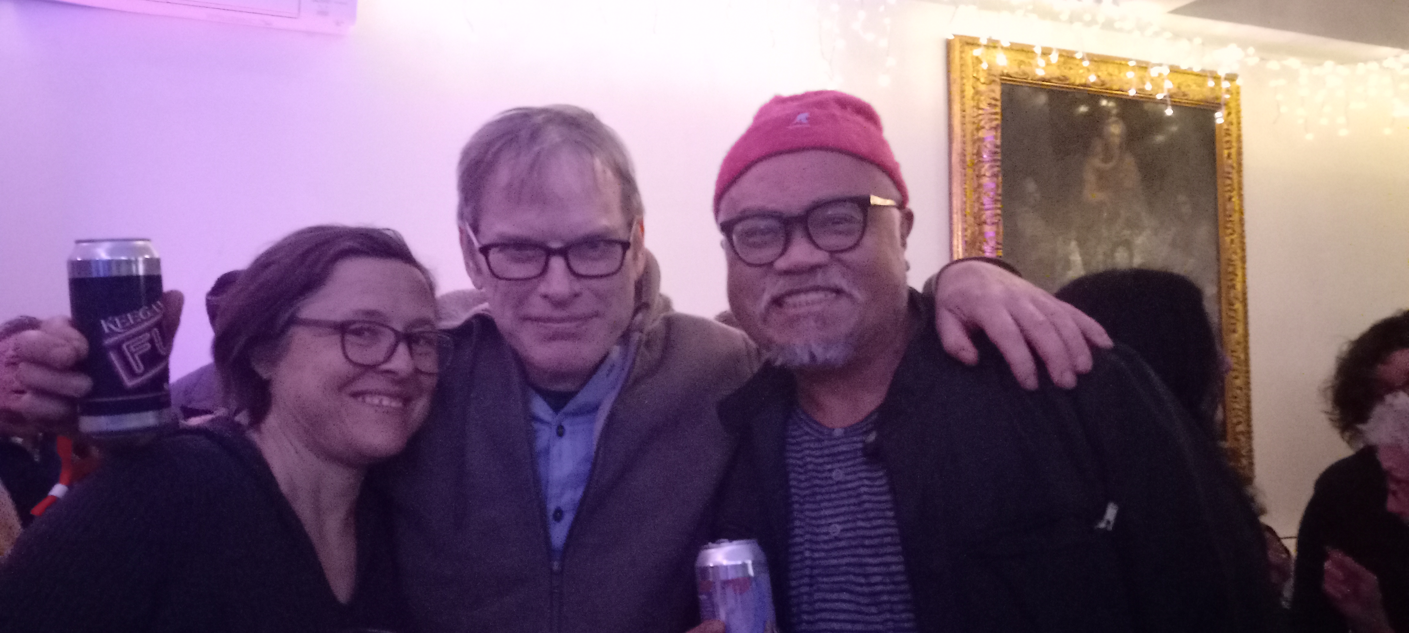 Gretchen, me, and Ray in the pre-show area, a posed photo taken by Nancy.