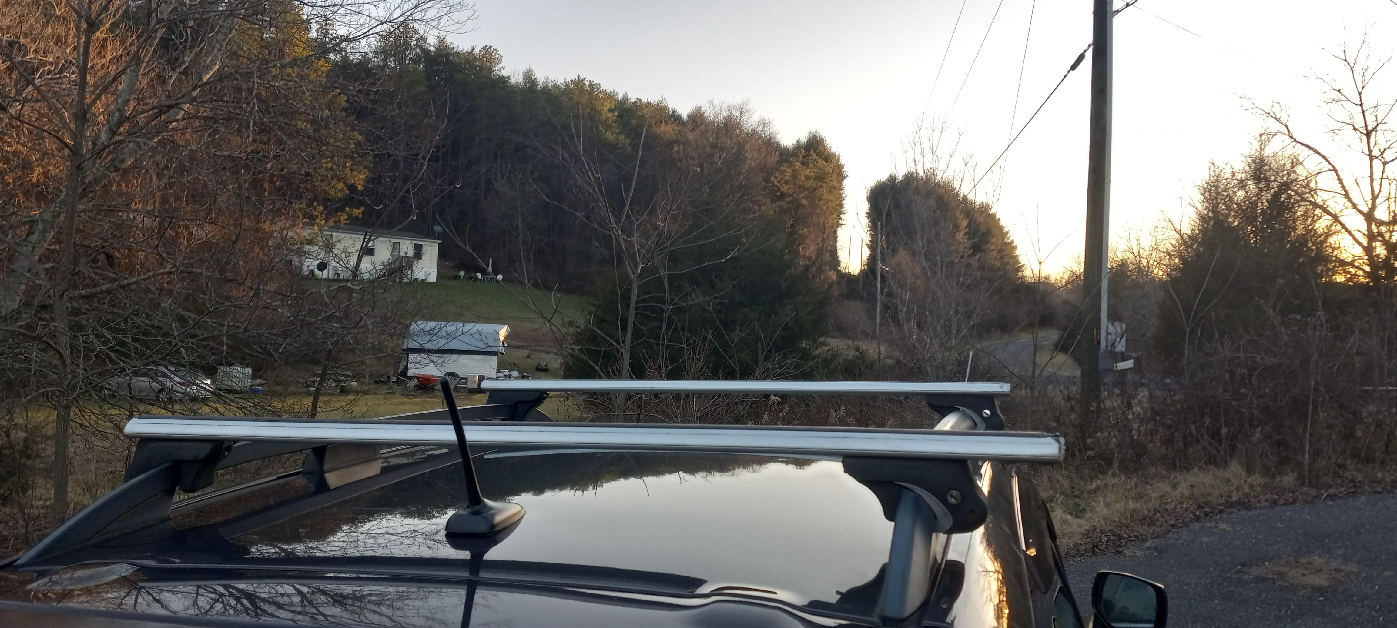 If you look carefully in that cut in the white pines of "Horizon Field" where the powerline passes through, you can see a deer against the sky. I planted those trees in the evenings after school back in 1985, so they're nearly 40 years old. That's my Subaru Forester in the foreground, and I'm parked in front of Don's Creekside trailer. Click to enlarge.