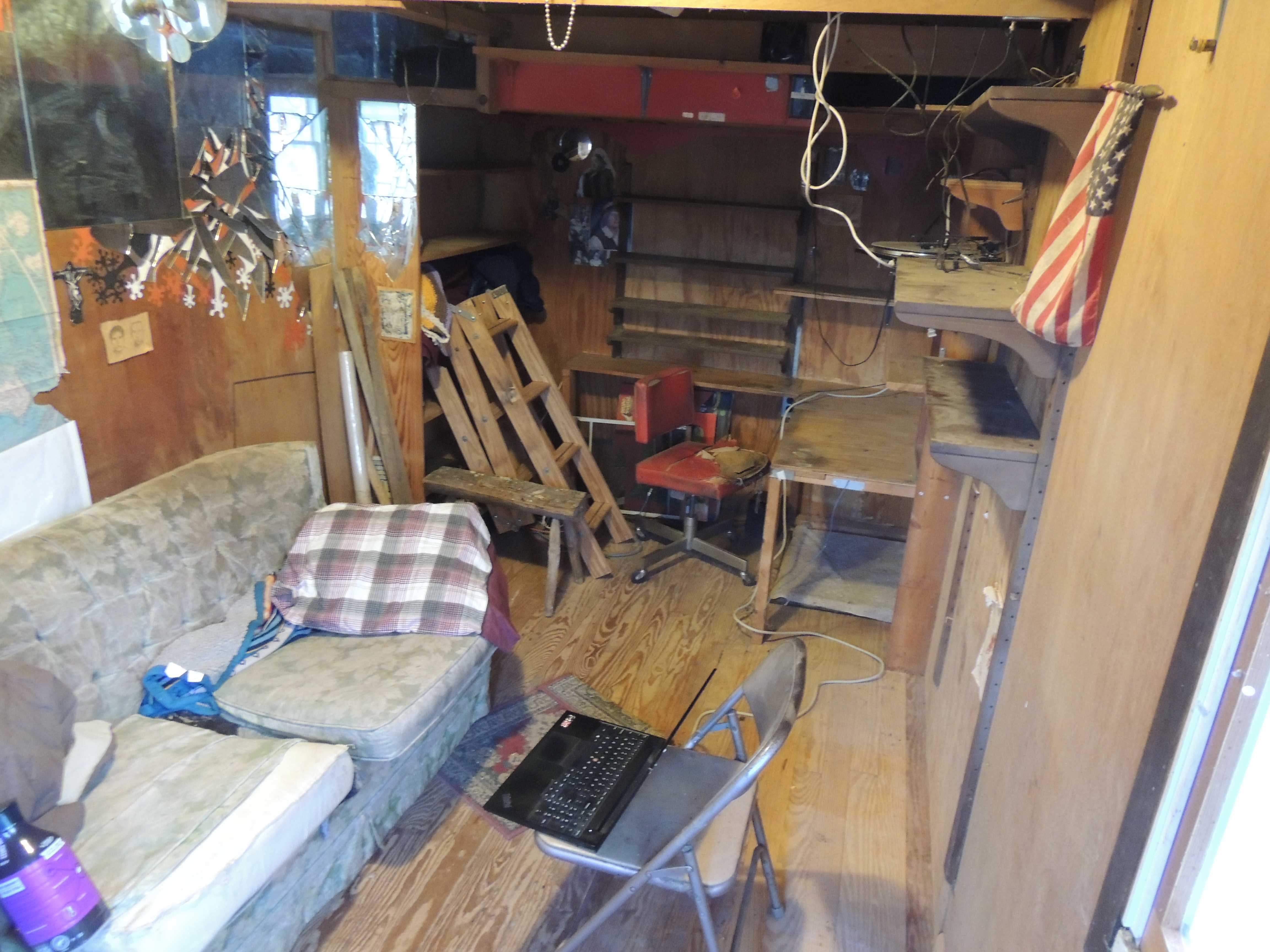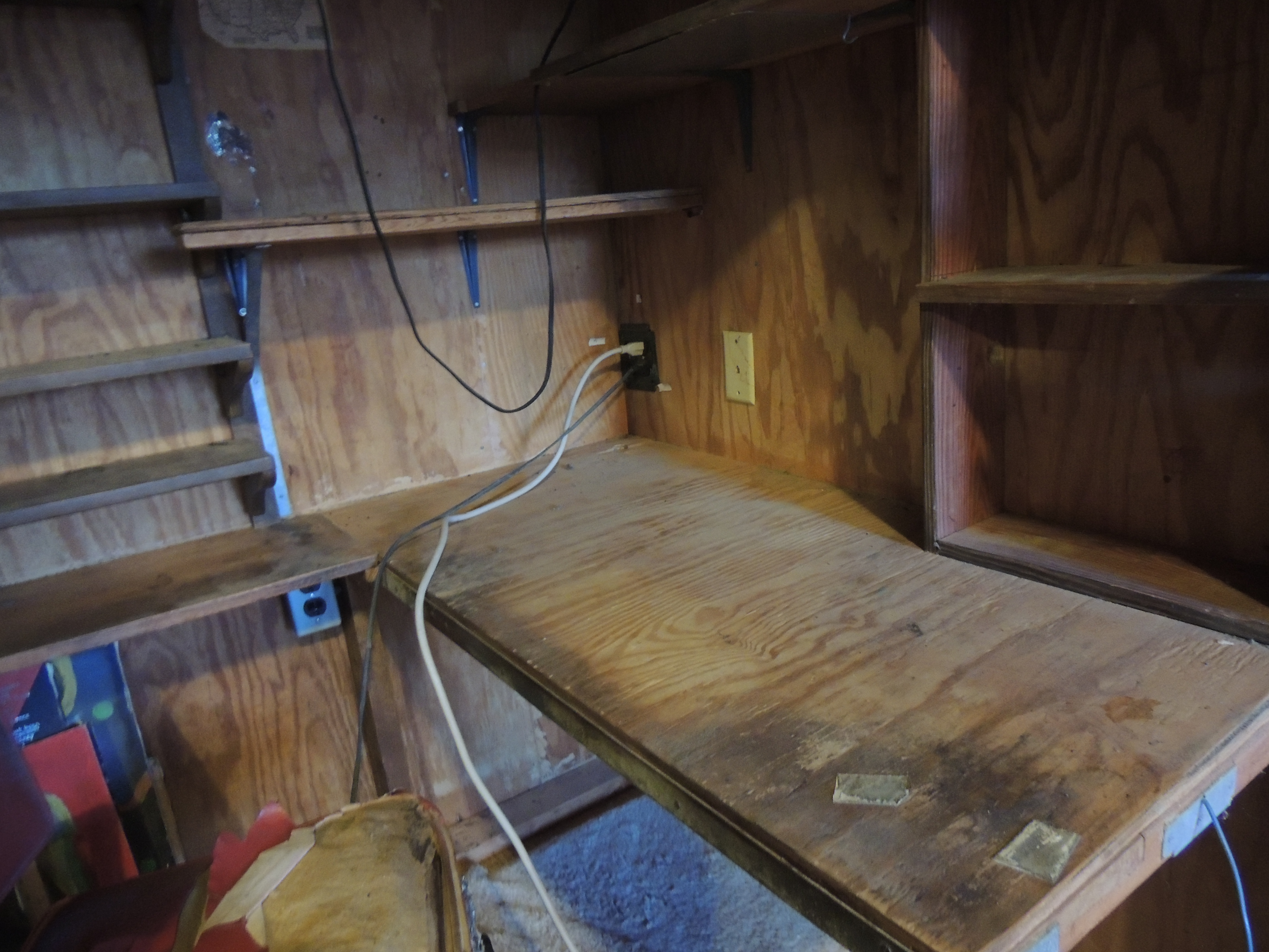 The cleaned-up built-in desk in the Shaque before I left it this morning, looking eastward. Click to enlarge.