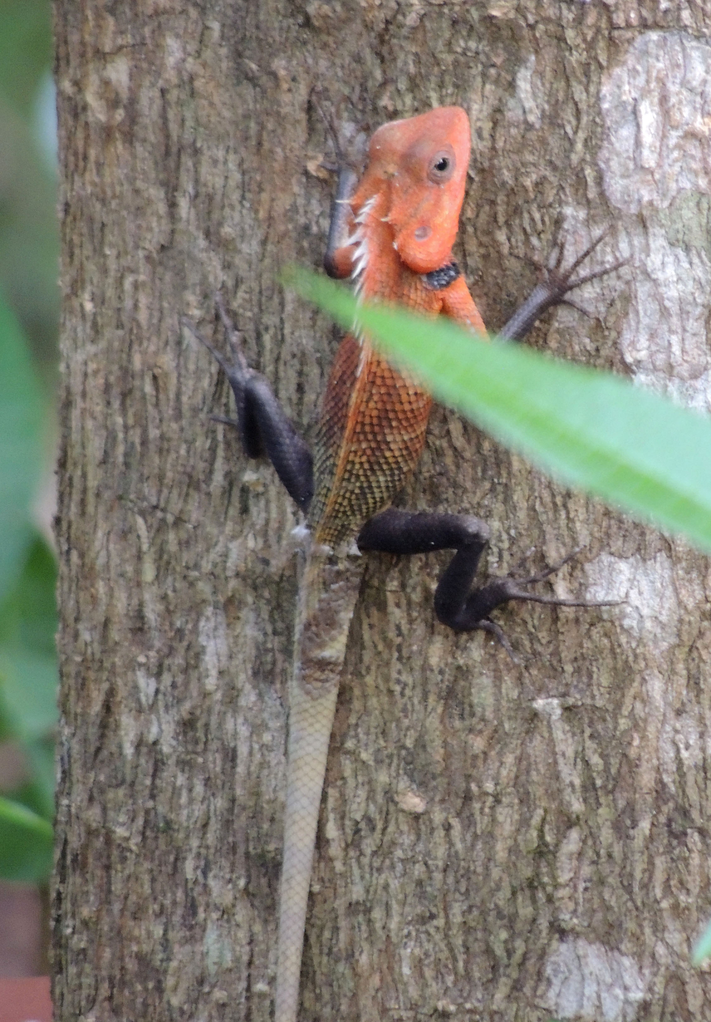 A male garden lizard in orange mode, shortly before he returned to a more usual drab grey-brown appearance. In the garden at at The Other Corner. Click to enlarge.