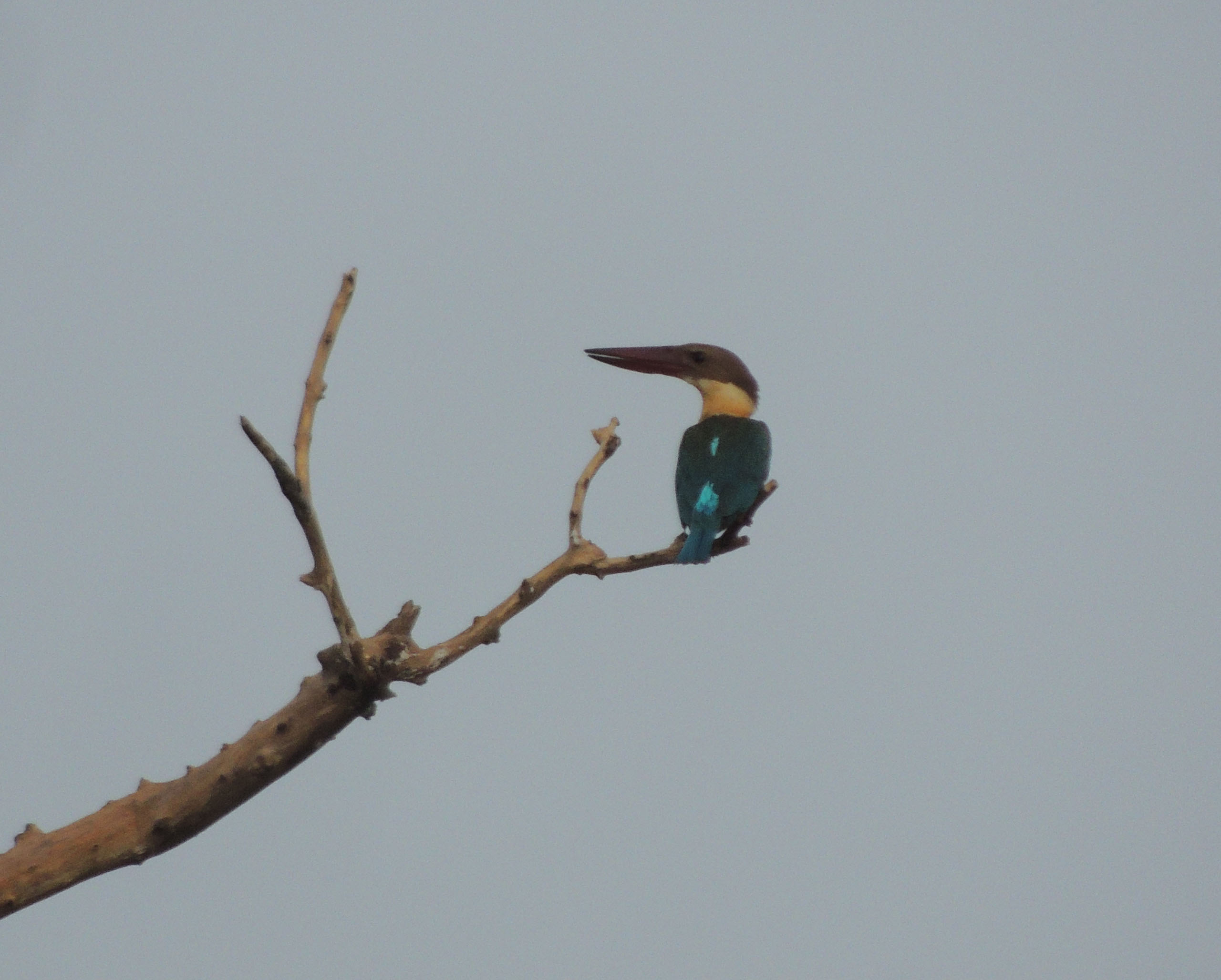 A stork-billed kingfiser above Habarana Lake. Click to enlarge.