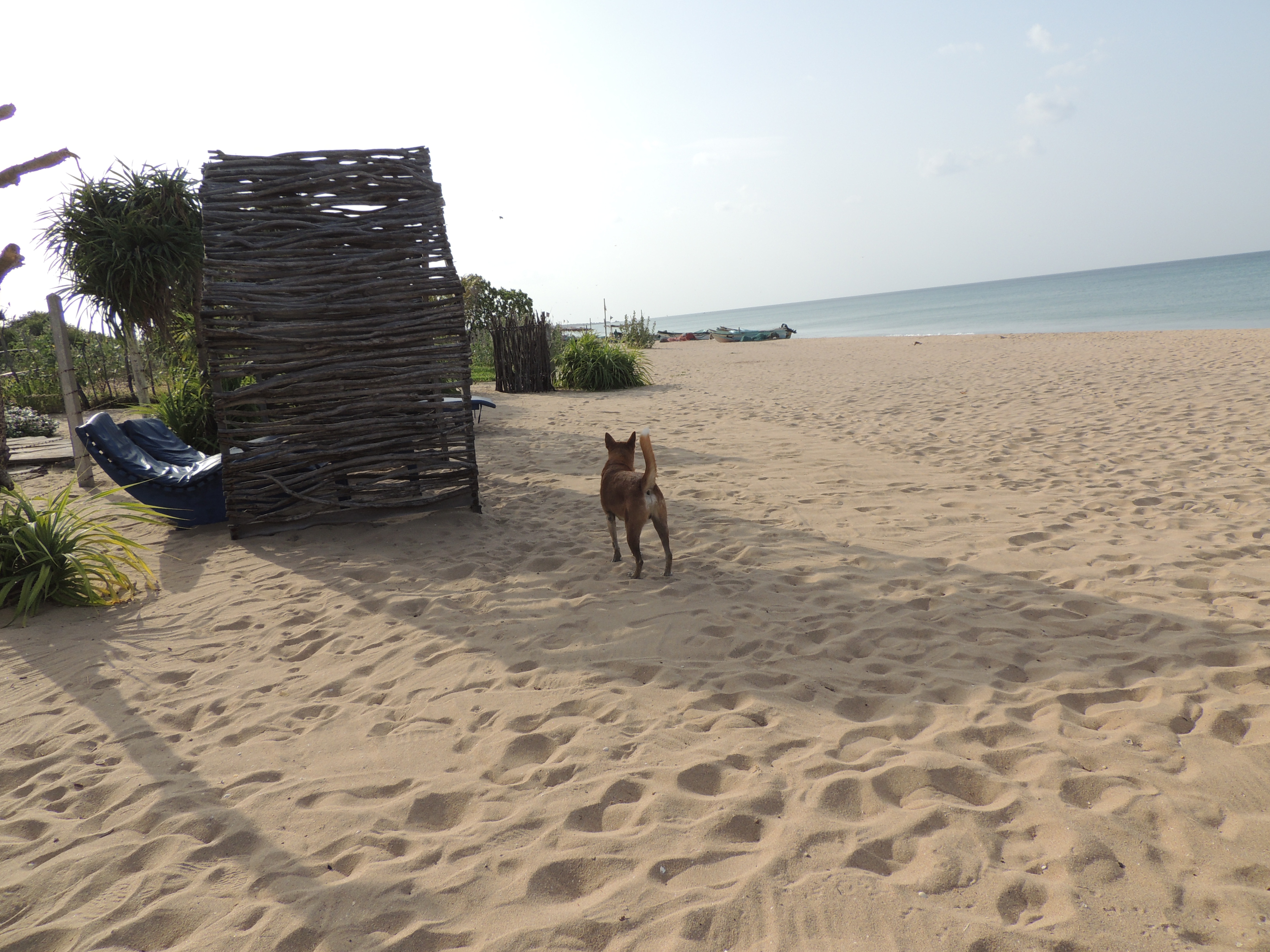 While they were all gushing about what an amazing time they'd had, I was taking notice of the behavior of one of dog who had been sleeping in the shade of a hammock for most of the day. The dog had been eying a cow walking down the beach and when that bovine got to the open gate giving access to the Amanta Beach Resort (including the gardens I'd just seen), the dog leisurely strolled up to the cow and barked in her face a couple times until she moved on. I realized at that moment that some of the dogs one sees lying around all over Sri Lanka have actual jobs. Perhaps in exchange for keeping out cows (and also suspicious humans), that dog can count on reliable access to food.