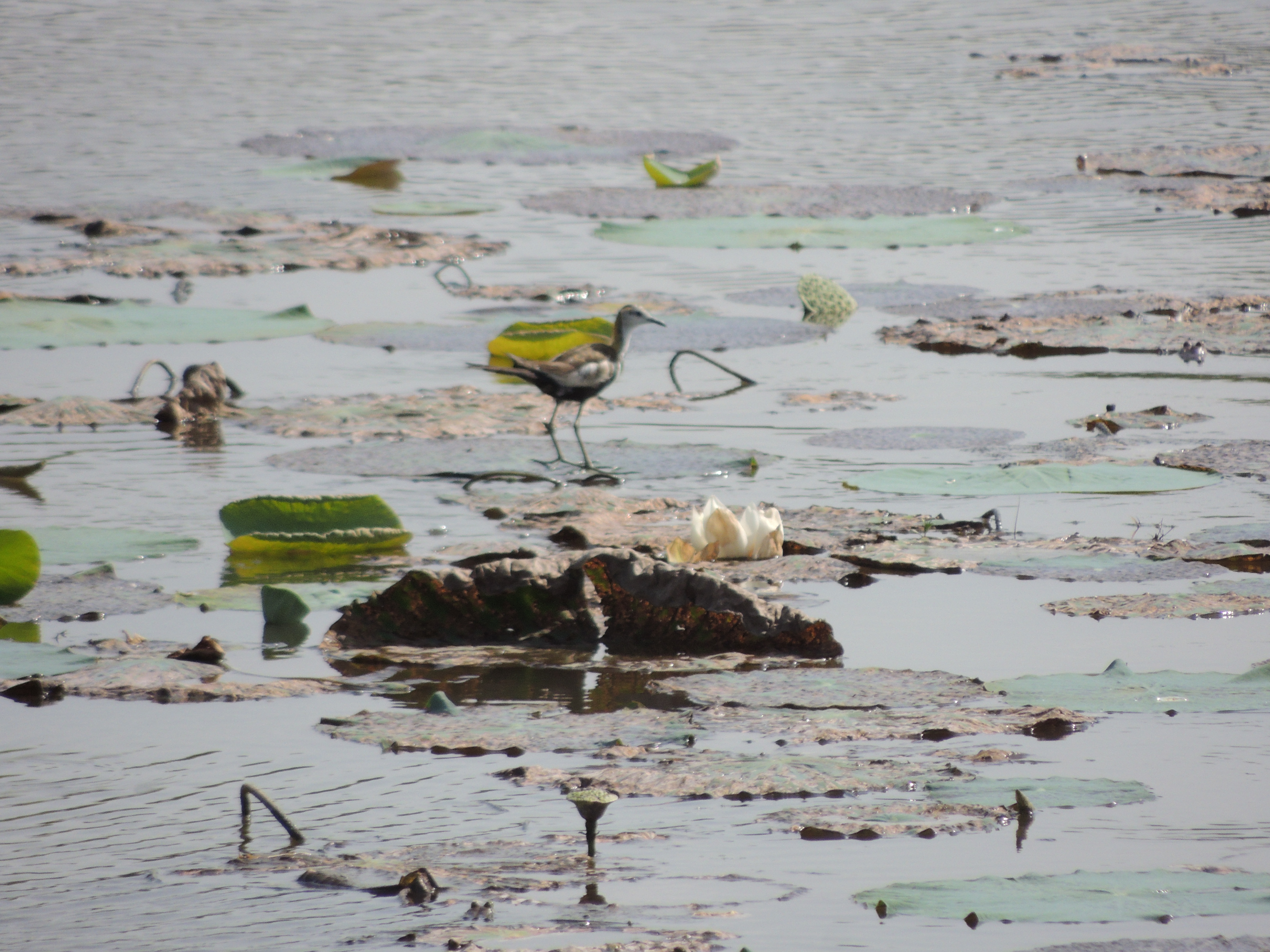Our swarm of tuk-tuk drove out past some rice paddies to the man-made dike holding back water on one side of an ancient reservoir. Then we walked along that dike, mostly looking at various plants and birds, few of which we hadn't already seen elsewhere. Most of the attention of our guides seemed to be going into an ill-fated effort to spot a crocodile. But there were still interesting things to see, like a herd of conventional Indian-style humpback cows and a nearby herd of water buffalo. They're related, but, according to Zach, they don't intermingle.