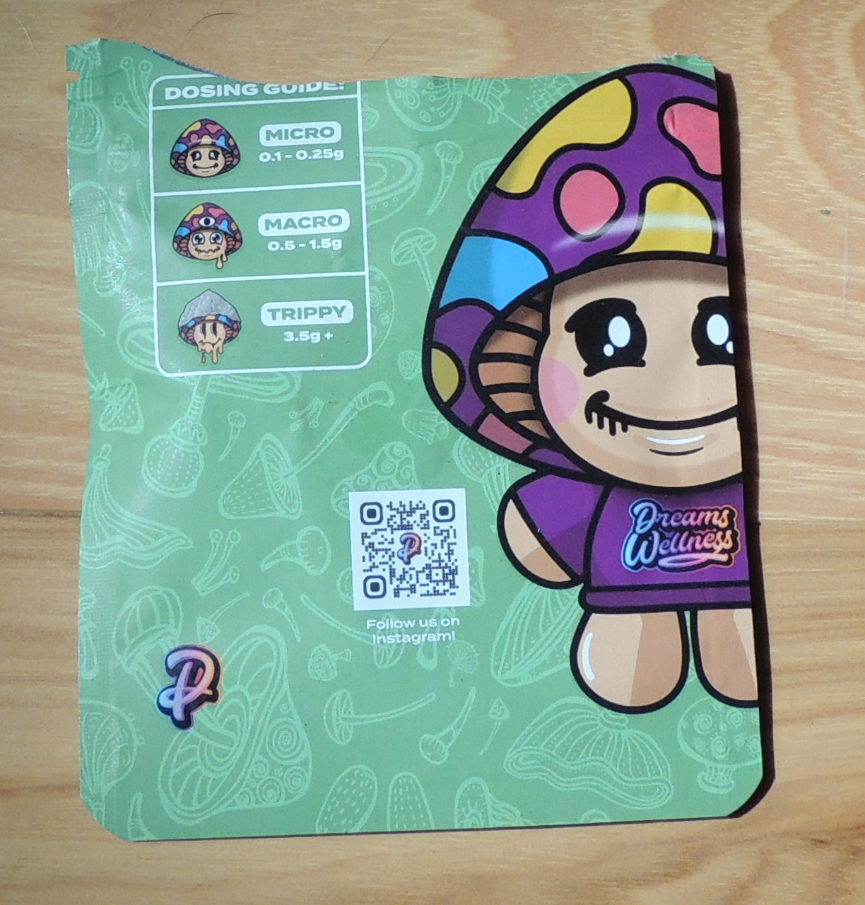 The magic mushrooms we ate were sold in this commercial packaging. They're legal in Washington, DC, and I think that was where Leah got them. Click to enlarge.