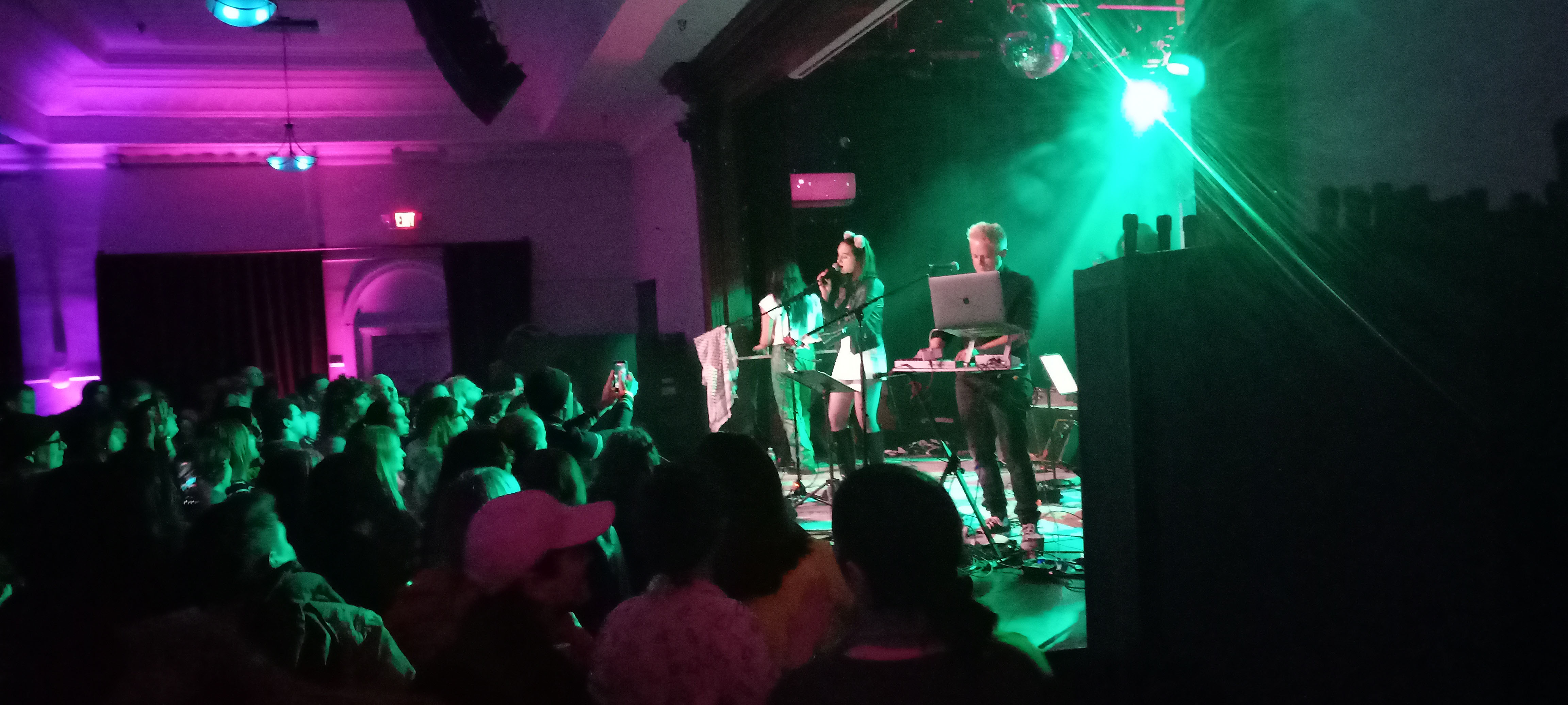 Assembly was surprisingly packed for a presumably unknown band on a bleak arctic evening. There were maybe 250 people in attendance, with all ages represented. There were definitely more women than men, but it wasn't wildly lopsided in that direction. Racially, though, the crowd was even more white than the one had been for Judas Priest that we saw back in 2019. Labiahead itself, though, was racially diverse, with an Asian guitarist and a Black drummer. It also featured a decidedly butch white woman twiddling synth knobs, singing backing vocals, and playing guitar.
