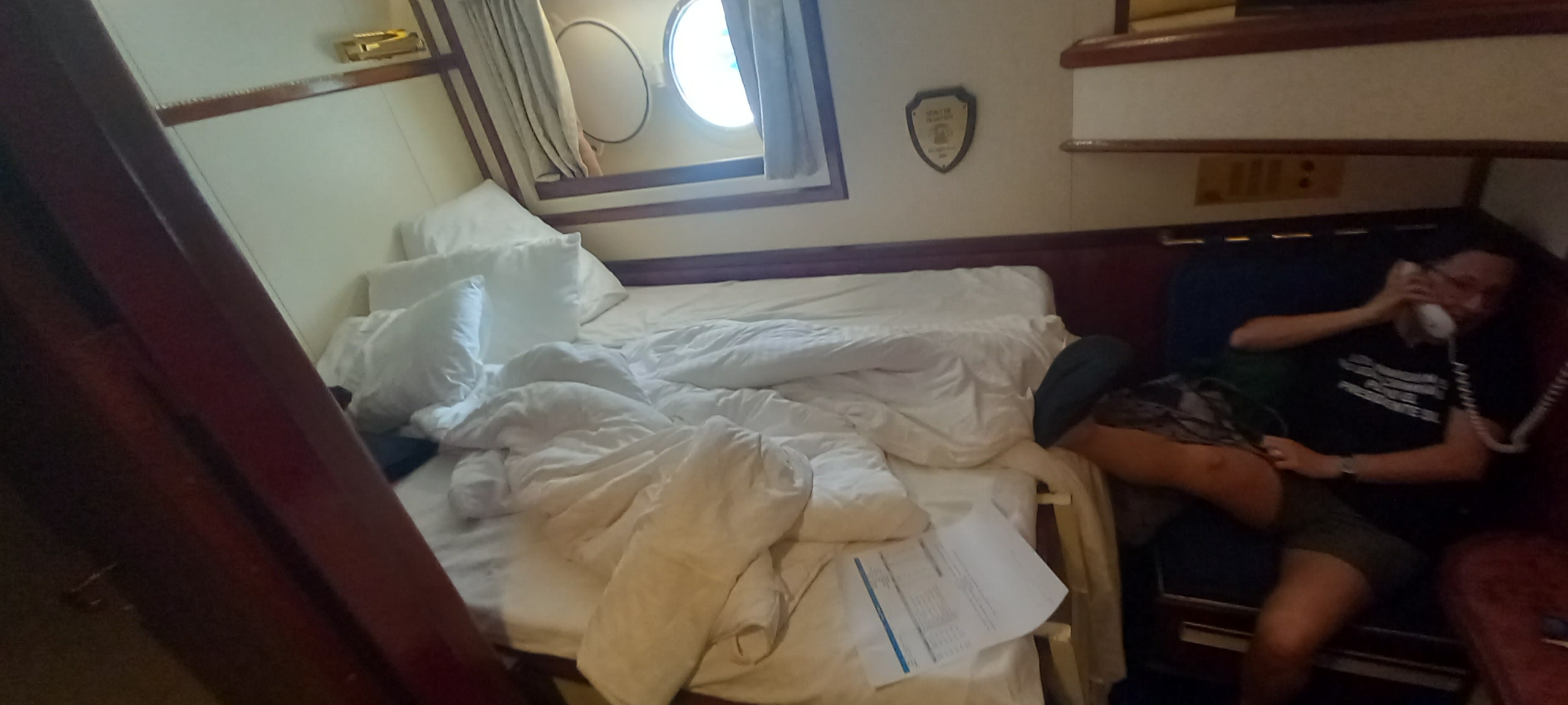 The bathroom and bed in our cabin. Click to enlarge.