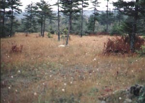 Not far beyond the River channel lay the edge of the upland forest. Here we terminated our traverse, but not before noting the presence of a layer of Ground Berry at the forest edge. We will return to a nearby part of the Cow Pasture Trail in our inventory of 9-9-98.