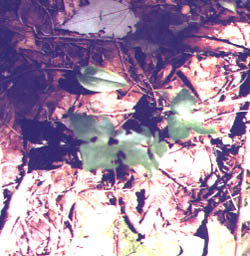 In one place an unusual and very local association was encountered. This was a close, almost intergrown mixture, of Sharp - lobe Hepatica and Canada Mayflower with Partridge Berry (Mitchella repens) only a few feet ( less than one meter) distant. The substrate for this association was soil in sandstone talus, indicating a likely acid reaction, as did two out of the three herbs present. As is well known, Sharp - lobe Hepatica is most common on calcareous terrain, so this occurrence seems to indicate that this species' stability extends into the acid range.
