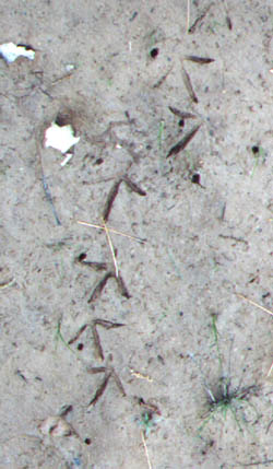 6-2-94: Hall Spring, Rader Mountain Trail. American Woodcock track and bill probing.