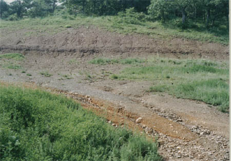 6-13-00: Southwest of Reddish Knob. Eroding mudstone - evidence of US Forest Service abuse.