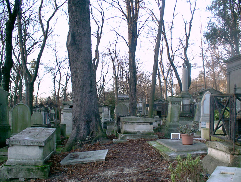 Graves litter (in a regular fashion) the groves of Pere Lachaise. There doesn't appear to be room left for any more dead Parisians. Click for a larger version.