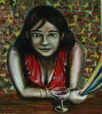 The inertia from the joy of drinking propelled me several drinks beyond the unspoken contract I'd made with myself while sober. This was not readily apparent to anyone there at the bar, all of whom by now must have made similar mistakes themselves. I found myself talking to a lonely looking woman across a table as she kept reloading her glass with beers from the pitcher I had thoughtfully bought for myself. She was perhaps the weirdest woman I have ever had occasion to communicate with, and I had to keep whipping my eyes around to check whether I was on LSD or not. She told me that her dog was actually a space alien named Webstron who every night made a point of downloading the contents of her brain into an unobtrusive object that resembled a ping pong ball. "And here," she volunteered, producing a ping pong ball from some hiding place on her chest, "is the device...with all my memories since the project began back in 1987." She handed it to me with pride, and I fumbled with it drunkenly. Too drunkenly, as fate would have it, and it slipped from my fingers and bounded across the floor. At this very moment an enormous Russian Wolfhound appeared from behind the bar, and snarling in indignation, scooped up the ball and disappeared while the woman laughed as though she herself were inhabited by an alien. The very next memory I have is awaking at three on the afternoon of the next day with an enormous hangover, my car parked badly outside the window, headlights still on.
