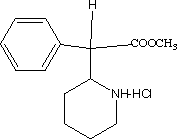Ritalin-a stimulant used to control hyperactive kids; it apparently helps them concentrate, stay in their seats, and quit talking to their friends and jeering at their enemies. Hyperactive kids suffer from ADD, Attention Deficit Disorder, and when they grow up, it seems they never outgrow ADD. Frequently, as adults, they still get their prescriptions of Ritalin, which they then distribute to their grateful friends. If you're punk rock enough, you grind and snort your Ritalin. Otherwise, you just eat it. If you're drunk when it kicks in, you'll feel a little like you're on Ecstasy. When you come down, though, you'll be mean and nasty and looking for a fight. At right is the molecular structure for Ritalin.