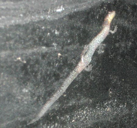 A salamander on the greenhouse glass tonight.
