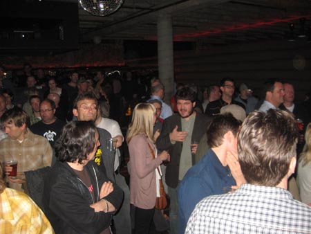 The Doug Fir is just another great Portland institution, built in the lodge style with enormous beams but with lots of intimate nooks and crannies, populated mostly by rugged-looking hipsters outfitted in retro-grunge plaid against the always-lurking Portland chill. Downstairs, the place where the Sadies would be performing, there were some interesting futuristic elements. For example, the floor near the bar was comprised of a tile pattern of large glass panels illuminated from below.