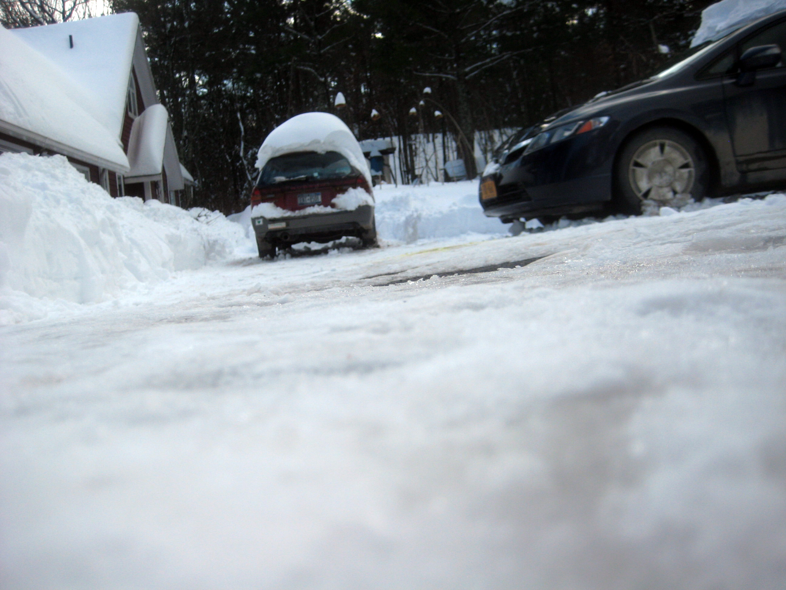 Snow as it looked today after the driveway was mostly shoveled out. (Click to enlarge.)