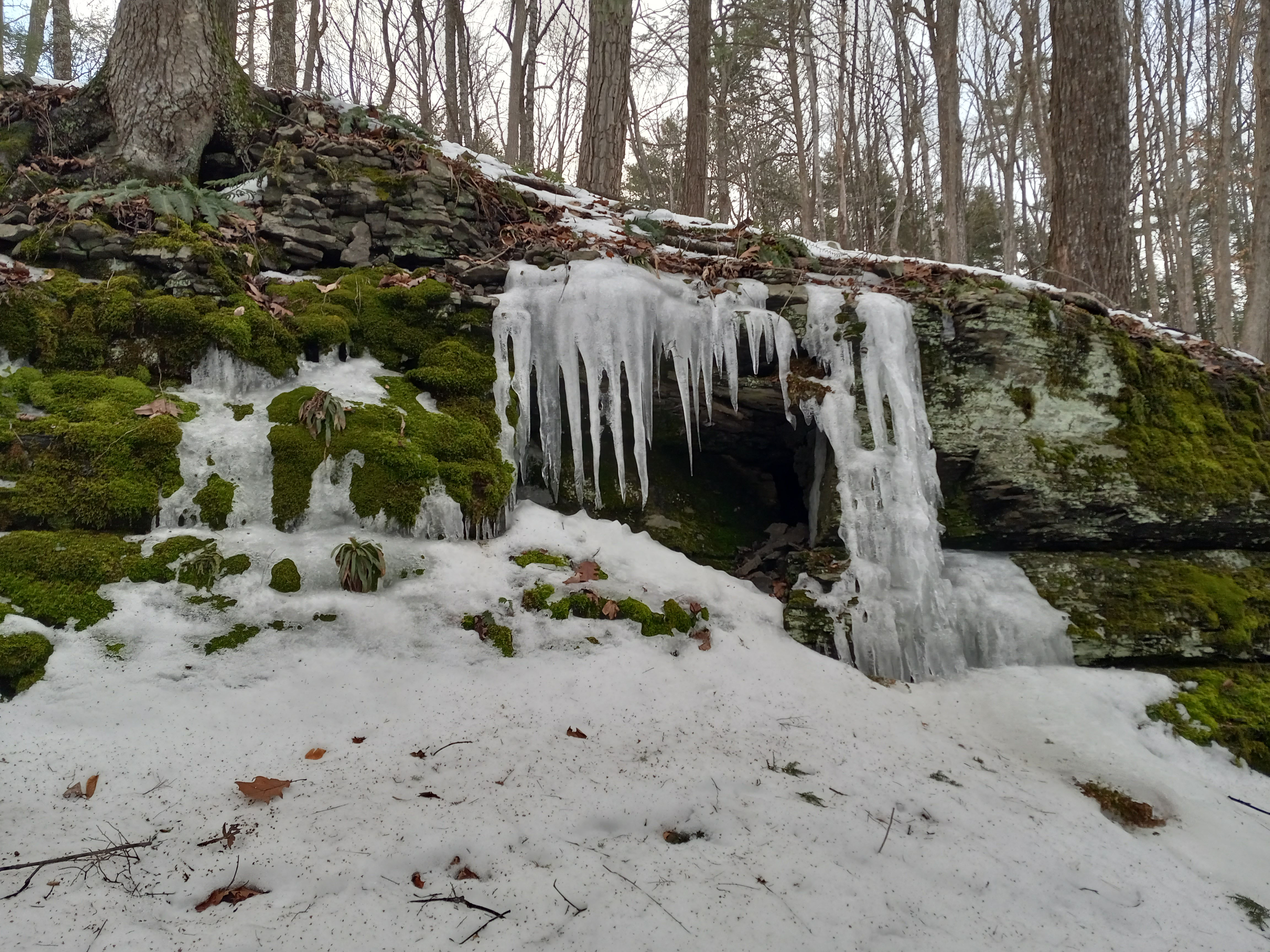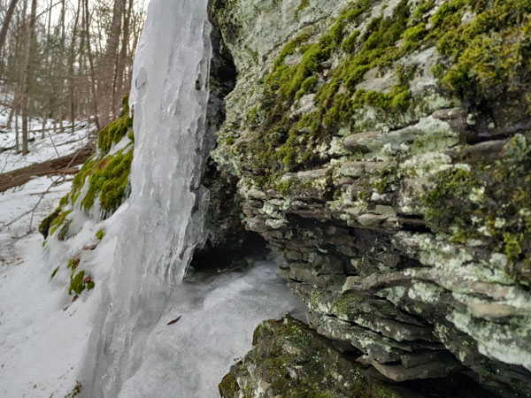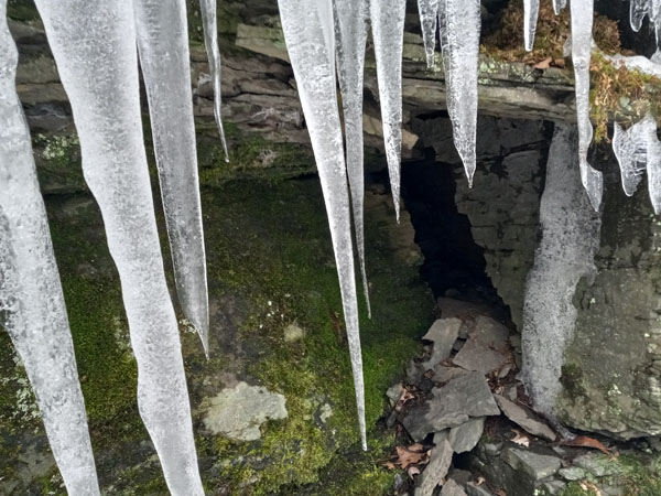 Between the icicle fangs in front of the shale cave. Click to enlarge.