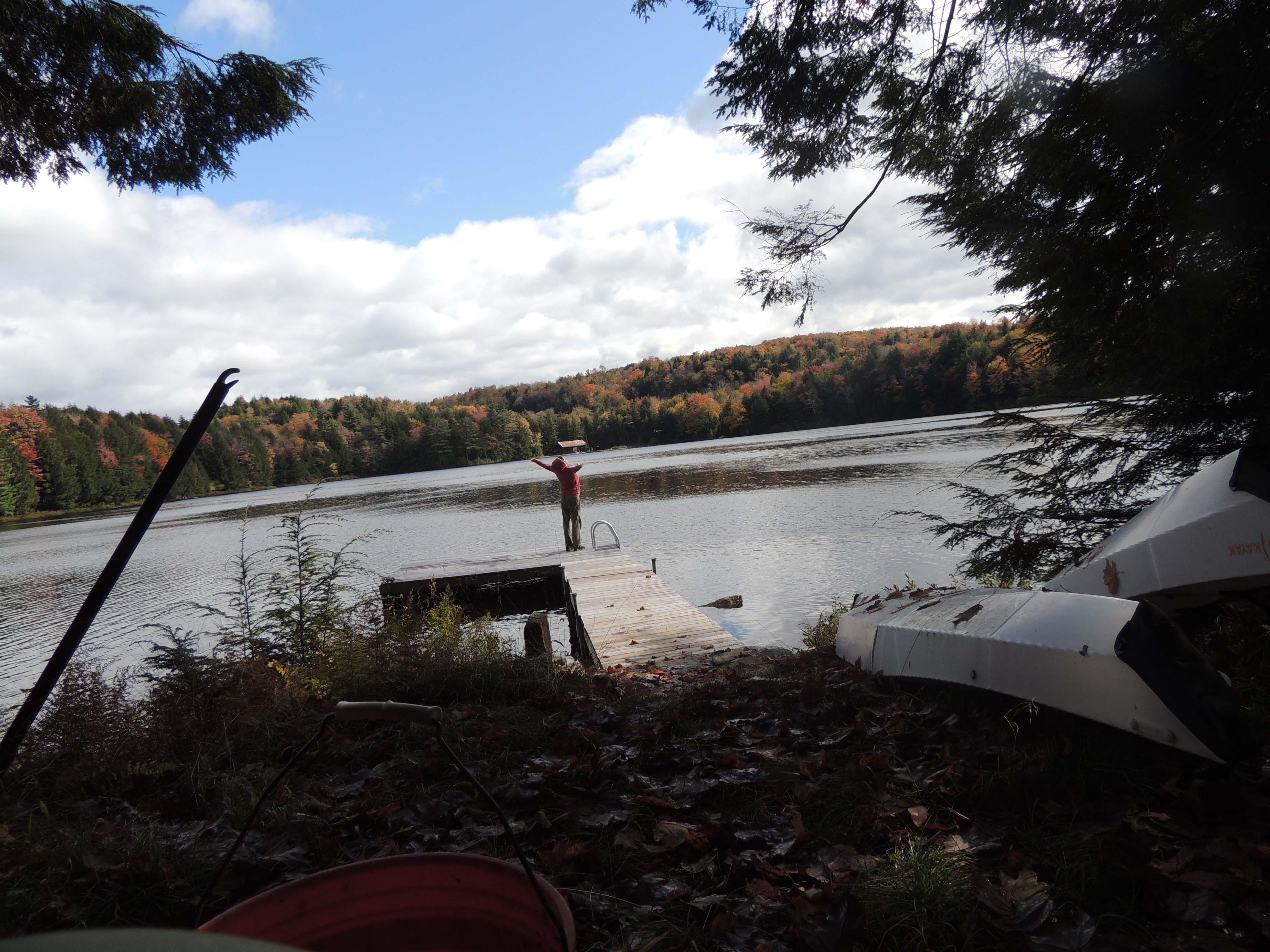 It was nice to wake up at the cabin this morning and have it all to ourselves for our old-married-couple rituals. Happily, the rain had stopped and, in fits and starts, the sun finally emerged. It was cool and rather breezy, but for October in the Adirondacks, it wasn't so bad.