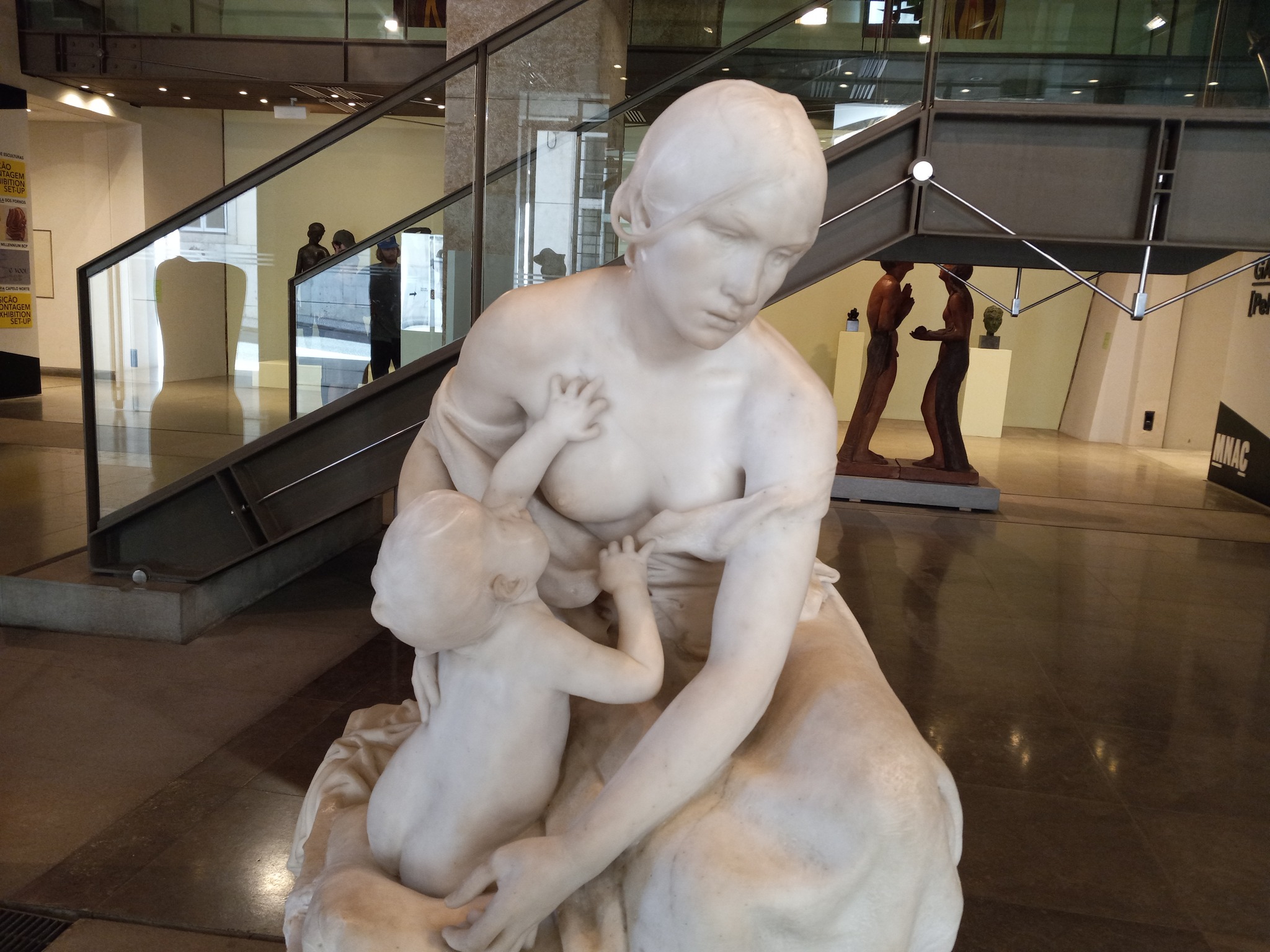 A marble statue of a pair of typical mammals in the window of a museum in Lisbon. Click to enlarge.