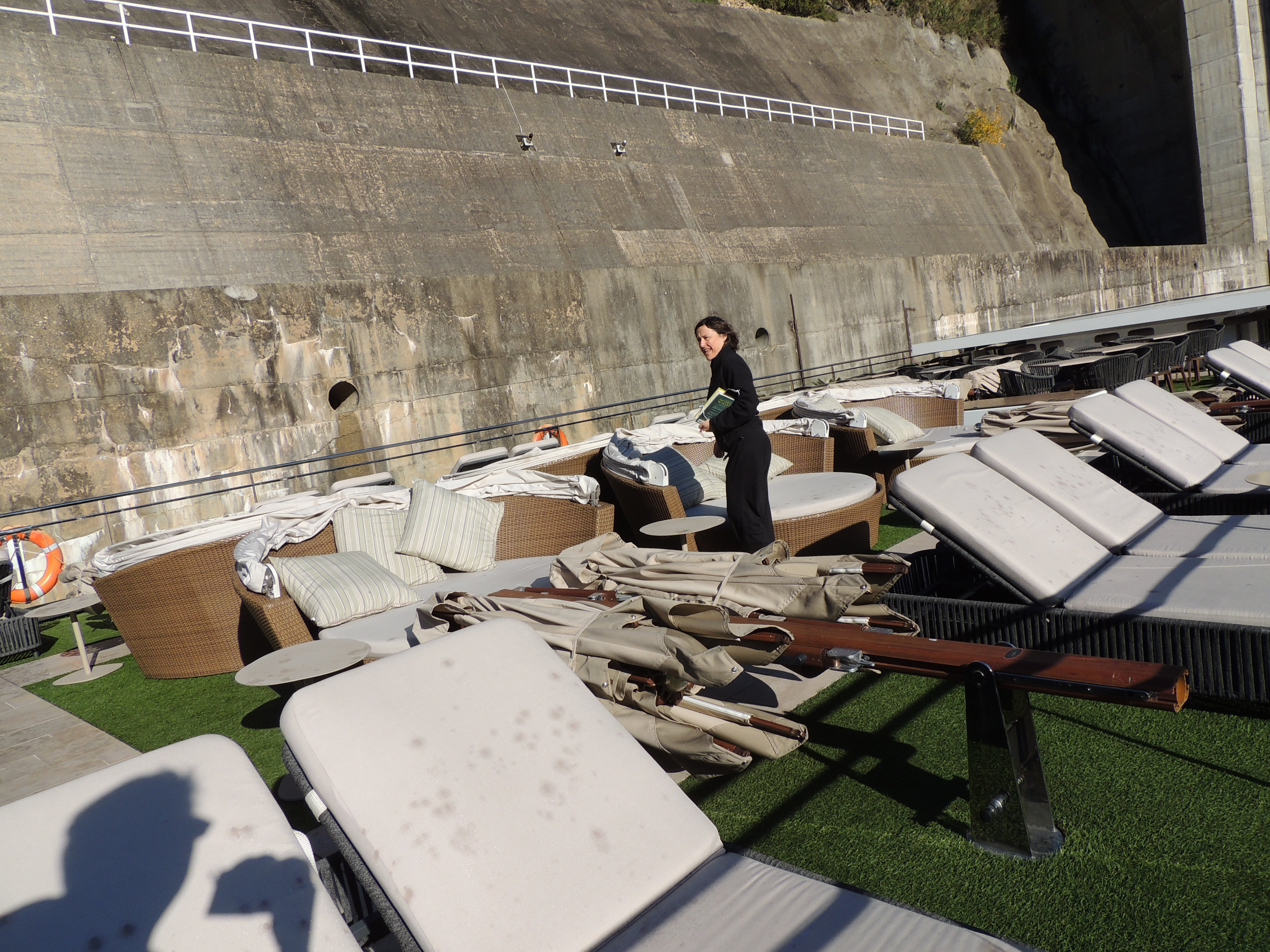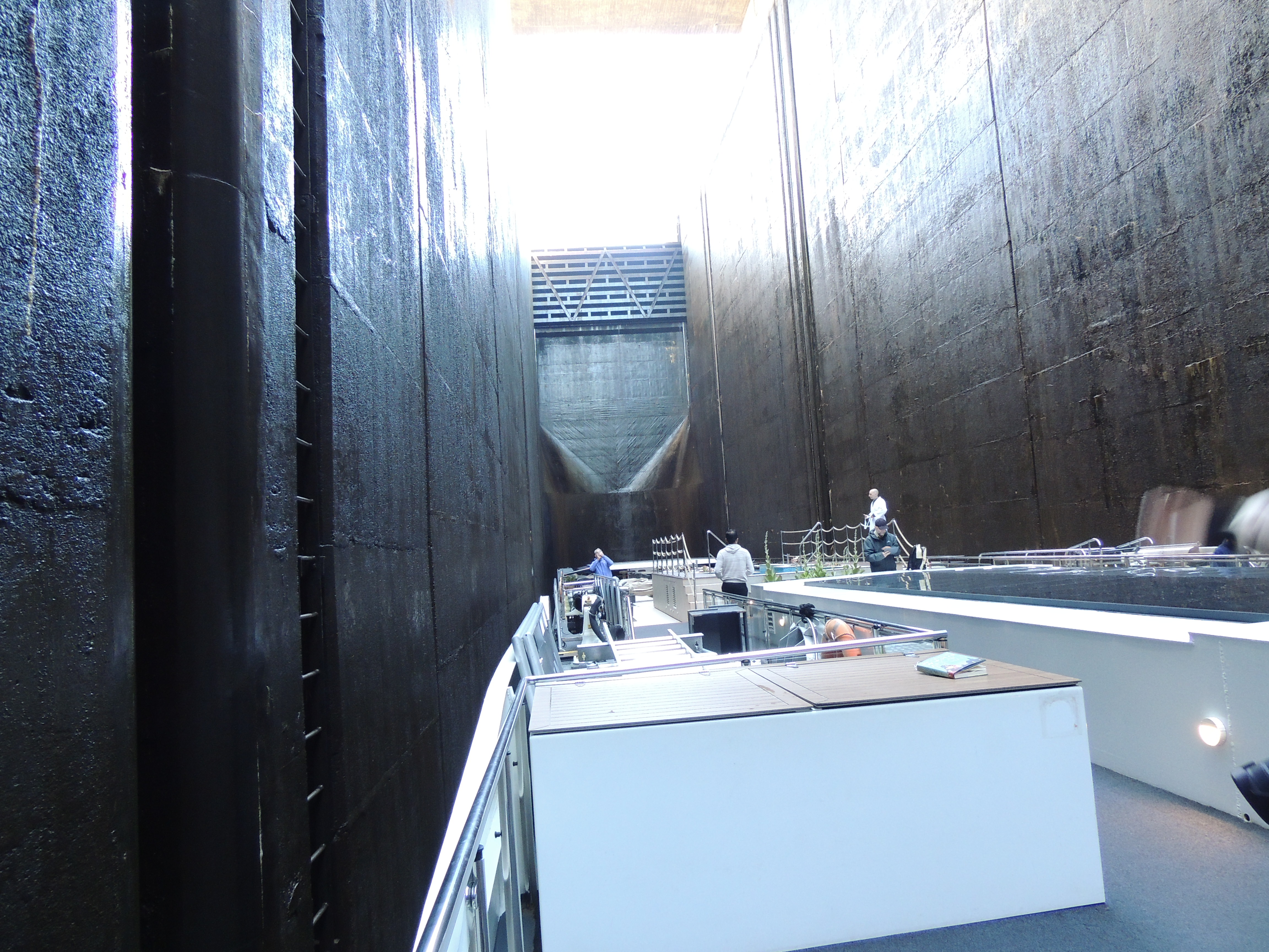 At the bottom of the Carrapatelo Lock. Looking at the thumbnail, at first I thought this was a wine glass on a table in a restaurant with white table cloths.