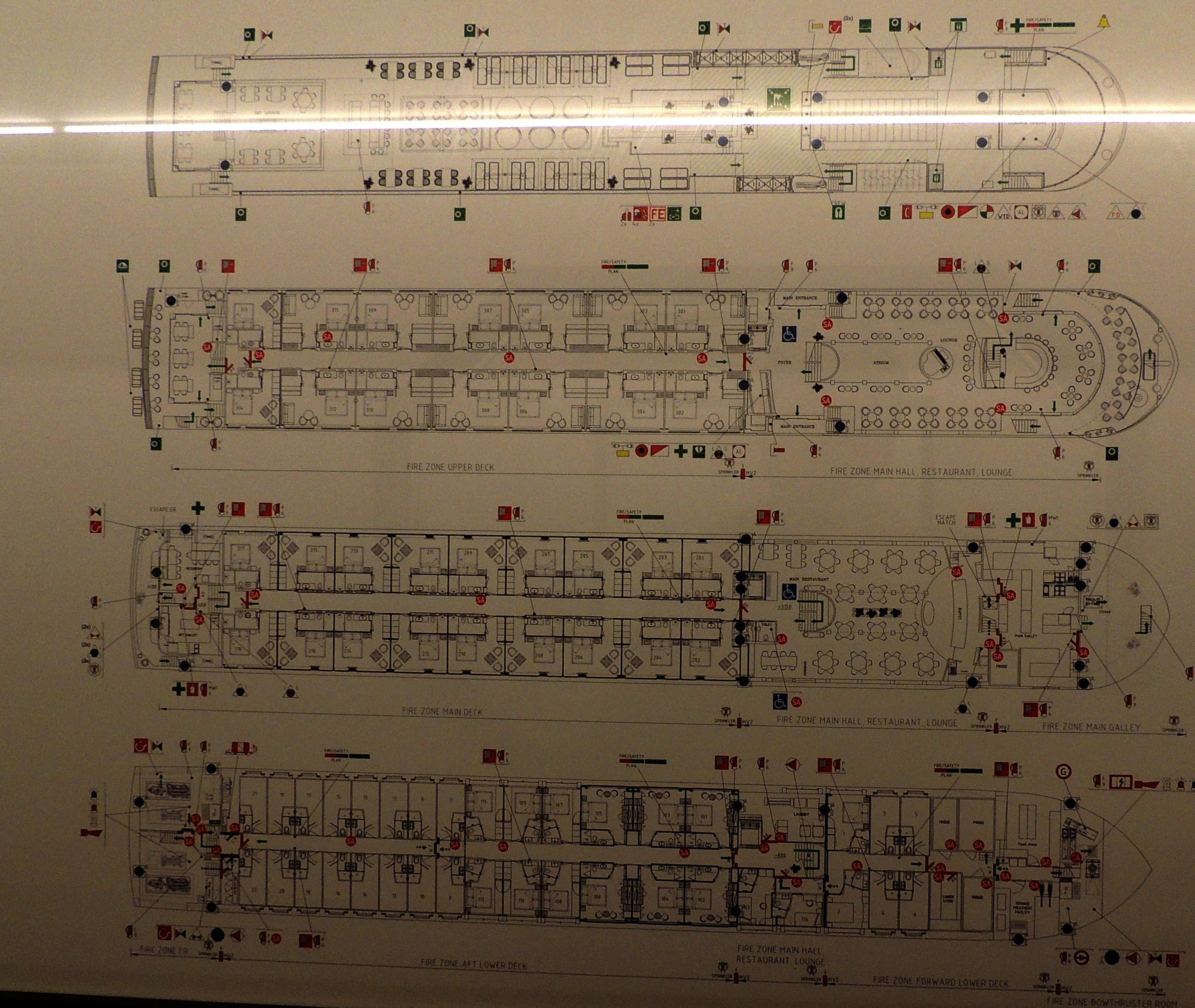 At some point I went to the public men's room near the main stairway and was horrified to see a brown smudge at the back of the toilet seat. This suggested that there was a man on the boat who had some combination of the following traits: