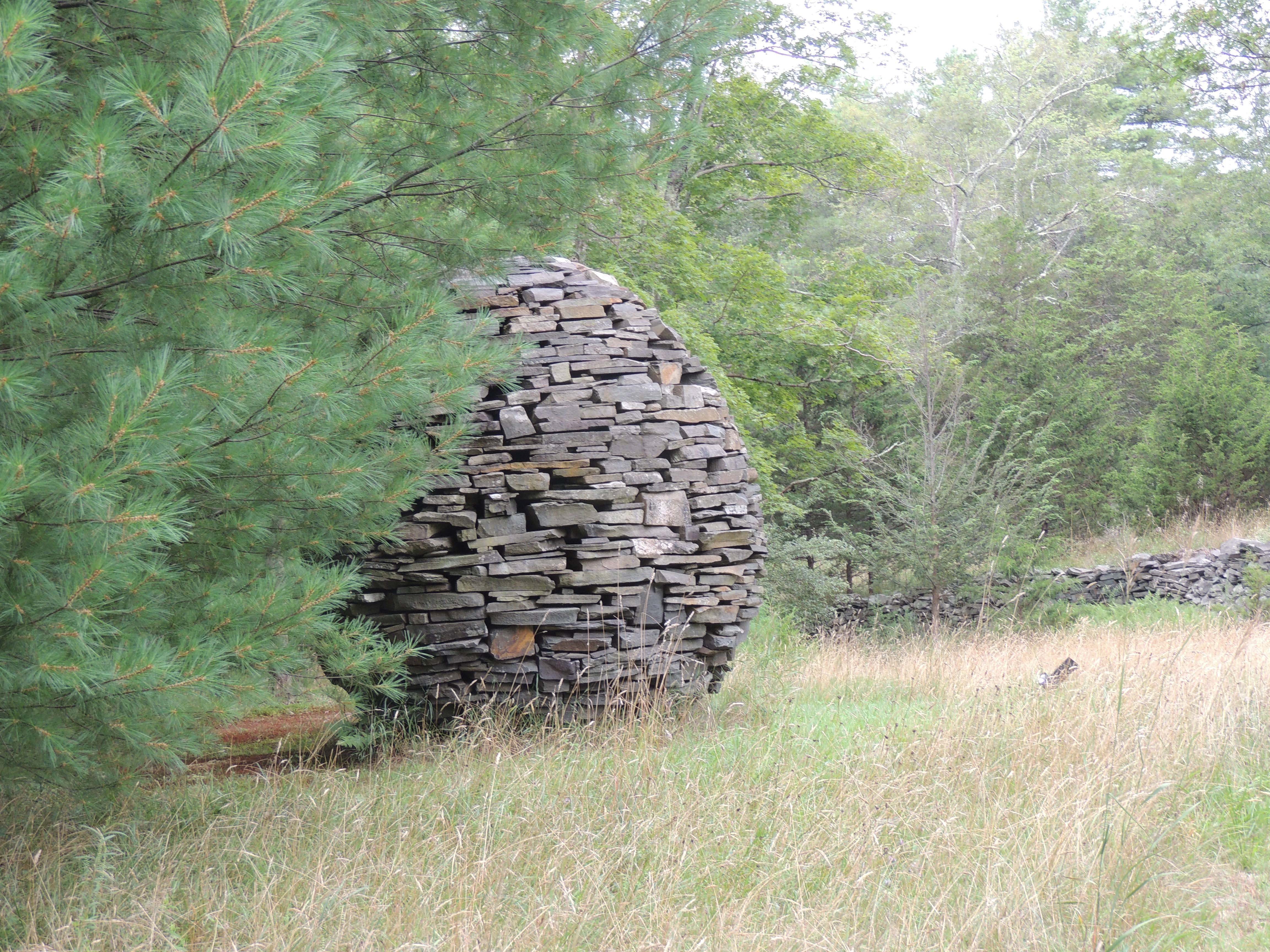 The bluestone globe our neighbor Georges (at the end of the Farm Road) finished during covid.