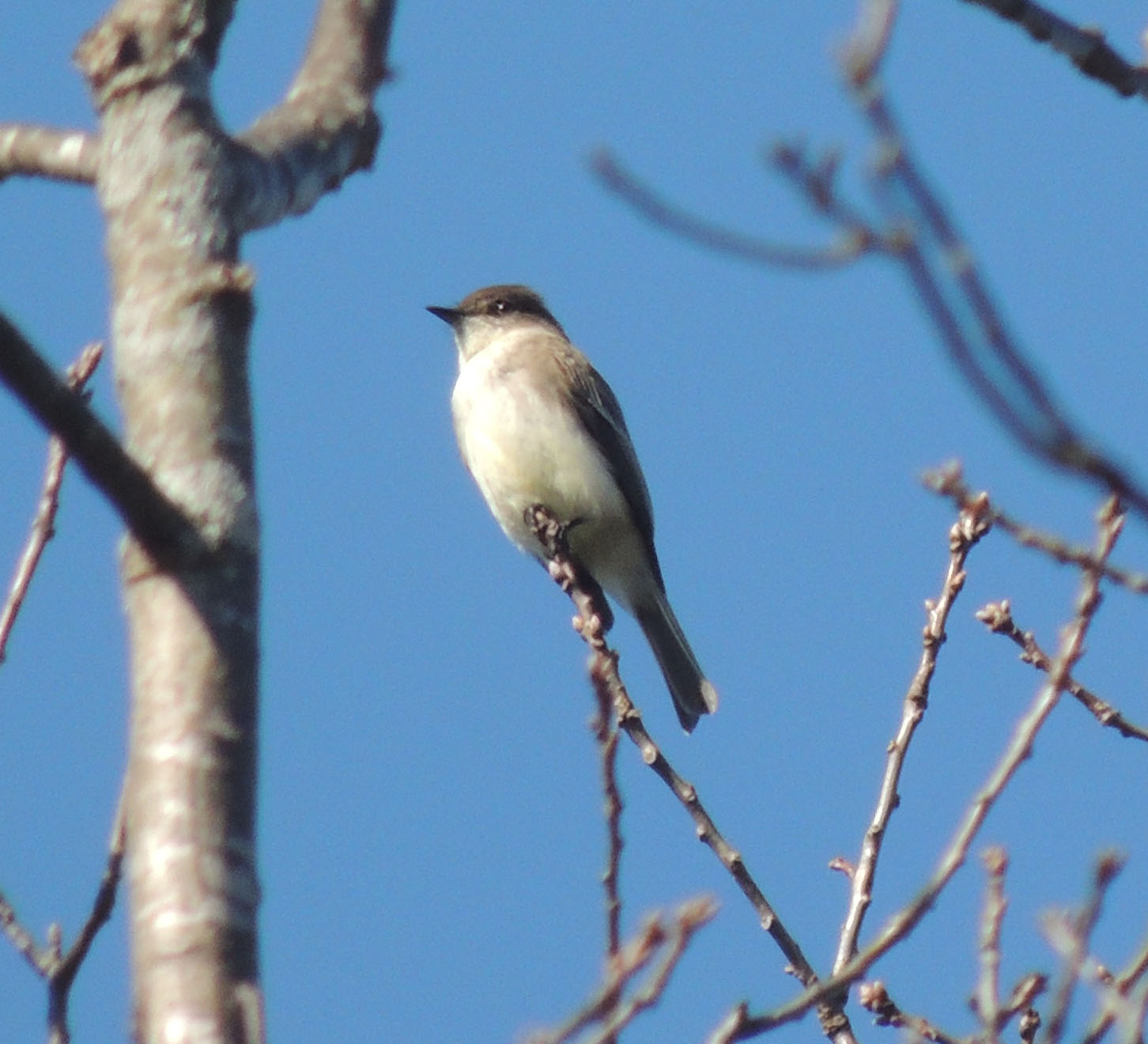 The early-arriving phoebe. There are a lot of some new exotic moth flying around, so perhaps he'll be fine through the coming cold snap. Click to enlarge.