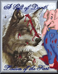 he mad AOL spammer is at it again. I've decided that it's probably a woman who is responsible, since now she's bitching about the negative attention I've drawn to Ladies of the Heart, a horrible sickeningly saccharine collection of websites maintained by apparently nonliterate women. The graphic at right is a parody of one of their sacred images, that of a wolf and its young. I have insider information that LOTH is famous for their spam assaults, particularly upon a similar but avowedly pagan group. You see, despite their use of pagan imagery, it seems that LOTH is actually a Christian organization. That's all the more reason to despise them.
