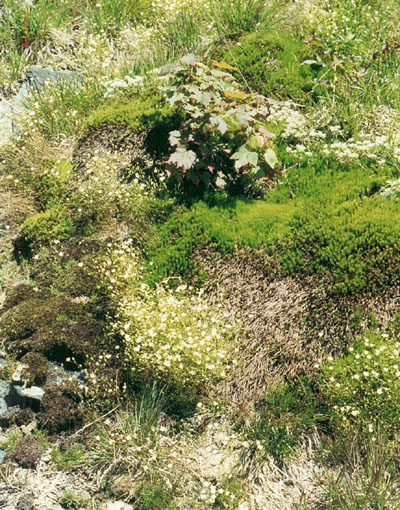 6-24-98, Buffalo Mtn. summit flora, with Arenaria groenlandica in bloom, Polytrichum sp.