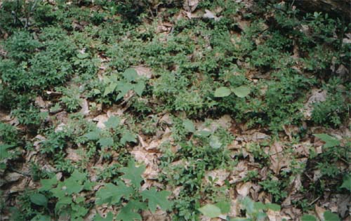 procumbens) penetrate the heavy leaf mat, but bare patches of