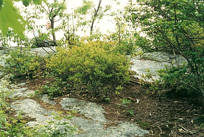 Although the solubility of silica in the quartz of sandstone is only of the order of 6 parts per million (Anderson,1972), its much lower concentration in rainwater insures that dissolution of sandstone will occur on these exposed ridges. By contrast, some impurities in the sandstone, such as the mineral apatite,which contain important soil nutrients such as phosphorus and calcium, have even lower solubilities than silica (Fuller, 1972 ). Consequently such nutrients may tend to accumulate in catchment areas of the summit as the sandstone weathers. These catchment areas may then favor mesic communities while more exposed areas would tend to be occupied by acid-xeric types.
