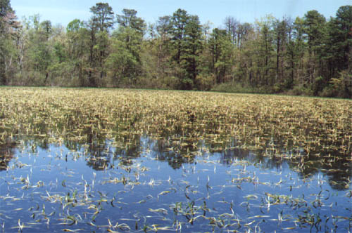 depth from very shallow to over 10 feet (3m) in some pond centers.