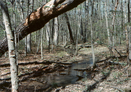 An opportunity was taken to measure the pH of the branch of Canada Run that feeds the false ponds and which flows through the tract of mesic forest near Coal Road. To avoid possible contamination by the road,the sample was taken to the south and upstream from the road. The value obtained was pH=5.3. Also noted in the vicinity of this tract was abundant Marsh Blue Violet and Wild Pansy (Viola rafinesquii), both in bloom, as well as numerous Cricket Frogs and droppings of the Cottontail Rabbit (Sylvilagus floridanus).