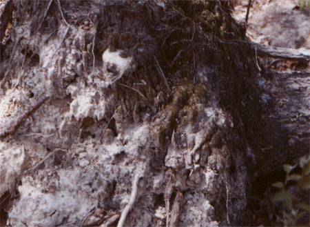 4-27-01, Maple Flats: Tree tip-up with white sand soil exposed