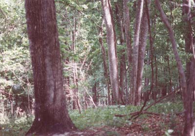 Many trees now bore evidence of fire in the form of blackened and scarred bases and were accompanied as well by partially burned dead wood on the forest floor.