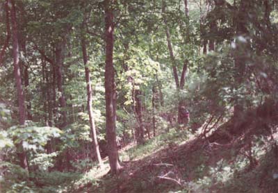 Somewhat farther down-slope than our survey extended, the Virginia Natural Heritage Program established a test plot (Fleming, 1999), their number FS42. Some additional Species recorded by them in this plot were Slippery Elm ( Ulmus rubra), Bitternut Hickory (Carya cordiformis), Tall Bellflower (Campnula americana), Hackberry (Celtis occidentalis), Twingrass (Diarrhina americana), Virginia Waterleaf (Hydrophyllum virginianum), Spice Bush (Lindera benzoin) and American Gromwell (Lithospermum latifolium) . However they found neither Black Maple, Basswood, Black Walnut nor many of the herbs recorded by us for the upper slope. An analysis of a composite soil sample for this plot was high in calcium and had pH=6.5.