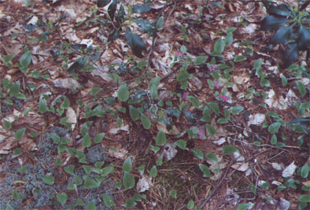 The stream was now crossed to the east side and a soil sample (no 3) collected from a 2-3 inch depth in a semi-opening and in a luxuriant stand of Coral Berry. Other species in the vicinity included Sycamore, Sugar Maple, White Pine, Striped Maple, Virginia Creeper, an unidentified dewberry and Wide-leaved Joe-pye Weed. Values of pH obtained were 5.7 initially and 5.5 twenty- three hours later.