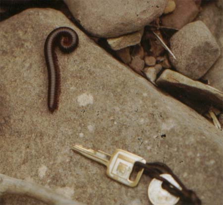 Continuing up-valley, we arrived at the extensive outcrop of red sandstone and a small seep that originates in the base of the mountain slope or valley side. Determination (T-23) of the water temperature of this seep resulted in a value of T = 11.0 deg C. Of interest here also was the presence of a large, dark unidentified salamander.