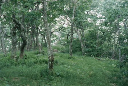 6-14-00: Northern Red Oak forest at 4200 feet elevation, base of Reddish Knob. Click to enlarge.