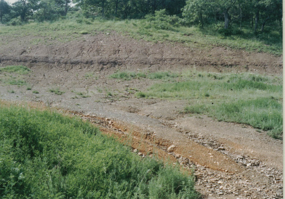 Conspicuous here was dominance of the soil by numerous large clasts of what appeared to be a dense quartzite. However, sprouting of vegetation from this soil appeared little hindered, perhaps because of the ample supply of moisture.