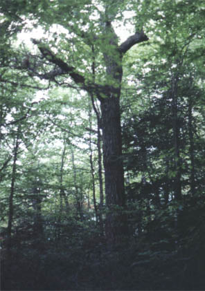8-20-01: Old growth Northern Red Oak southwest of Reddish Knob. Note storm-severed limbs.