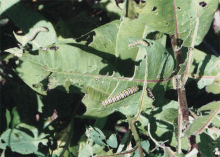 8-26-01: Reddish Knob summit. Larvae of Monarch on Common Milkweed.