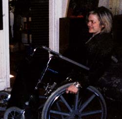 Jessika doing wheelchair tricks while waiting for the tussin to kick in.
