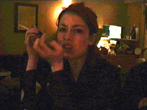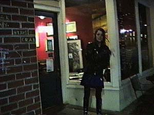 Sara enters the Mudhouse on the Downtown Mall. Click for an animation of Sara in the Escafé.