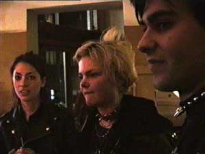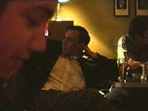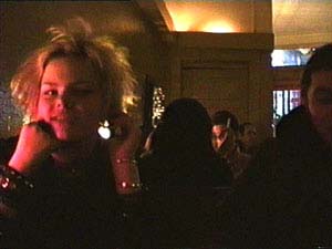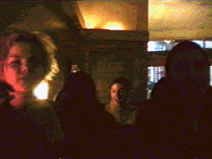 Foreground from left: Jessika and Bri-Bri. Midground: Jenfariello's housemate Ami (back to us). Farther back: unknown "date" of Ami's [Erin the poet]. Click for an animation.