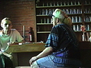 The upstairs bar at the Féve. The man on the far left is the bartender and the man on the right is Catfish. |