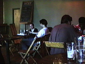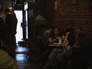 The upstairs bar at the Féve. The male part of the couple on the extreme left was the one who objected to my videotaping and bare feet. |