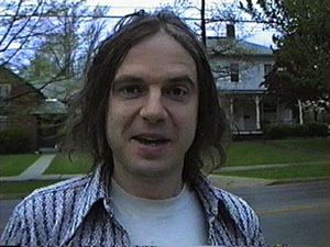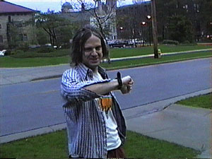 Rippy on College Street in Oberlin. Behind him, to the North, is the center of the Oberlin College campus. |
